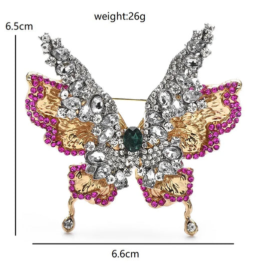 Wuli&baby Luxury Double-layer Butterfly Brooches For Women Lady 3-color Rhinestone Big Beautiful Insects Party Office Brooch Pin