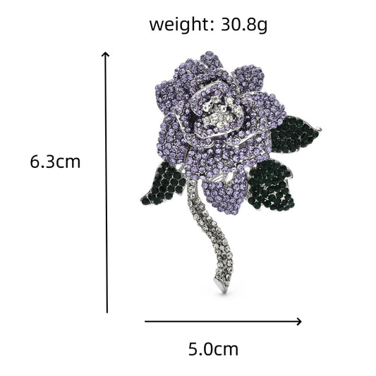 Wuli&baby Luxury Shinning Rose-flower Brooches For Women 4-color Full Rhinestone Charming Flower Plants Office Party Brooch Pins