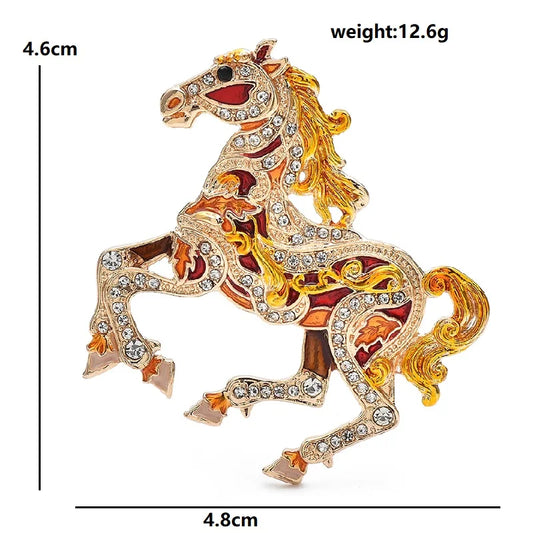Wuli&baby Enamel Horse Crossing Obstacles Crystal Animal Brooches 4 Colors Jewelry Pins Bag Accessory Gift
