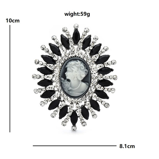 Wuli&baby Huge Rhinestone Lady Portrait Round Brooches 2-color Big Beautiful Lady Picture Brooch For Women's Winter Clothes Pins