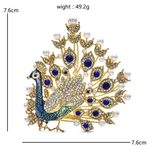 Wuli&baby Luxury Pearl Peacock Brooches For Women Lady Rhinestone Beautiful Bird Animal Party Office Brooch Pins Gifts