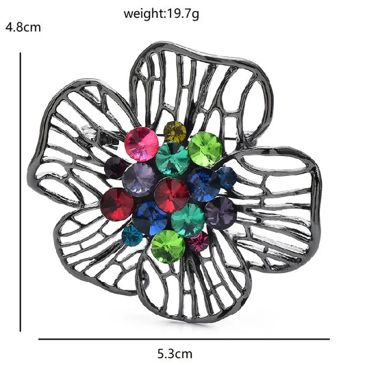 Wuli&baby High Quality Hollow Out Flower Brooches 4-color Crystal Plants Brooch Pins For Women's Clothes Bags Gifts