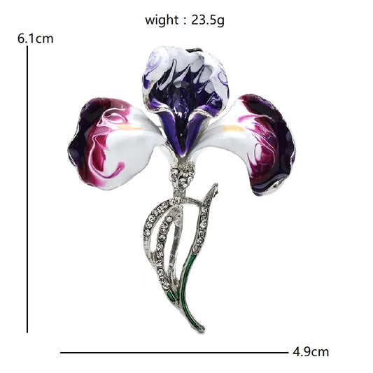 Wuli&baby Enamel Orchid Flower Brooches Rhinestone Elegant Plants Brooch For Women's Clothes Backpack Pins Gifts