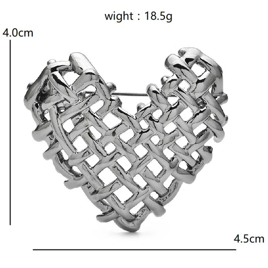 Wuli&baby Metal Knit Heart Brooches For Women Unisex 3-color Easy-match Valentines' Day Love Brooch Pins Gifts