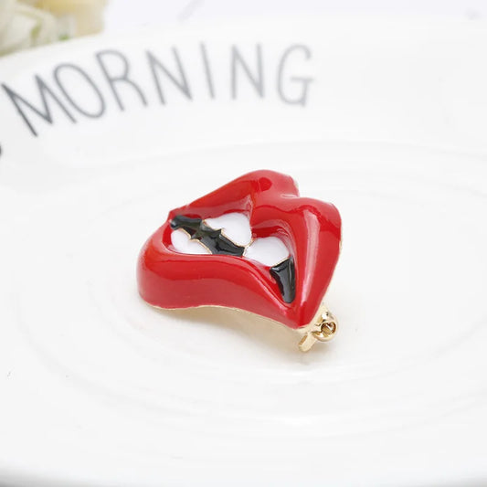 Wuli&baby Red Lip Enamel Brooches Women Men Party Banquet Alloy Brooches Pins Girls' Hats Bags Accessories