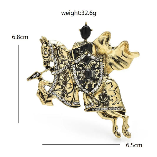 Wuli&baby Vintage Gold Color Knight Riding Horse Holding Shield Brooch For Men and Women