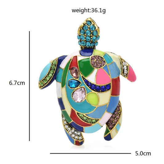 Wuli&baby Vintage Turtle Brooches Women Men Multicolor Rhinestone Enamel Swimming Turtle Party Office Brooch Pin Gifts