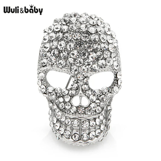 Wuli&baby Sparkling Rhinestone Skull Brooches For Women Unisex 2-color Punk Style Casual Party Brooch Pin Gifts