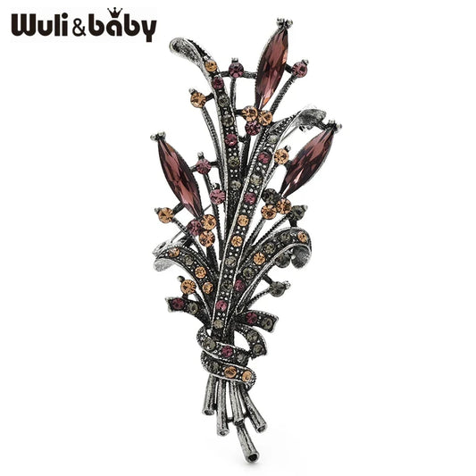 Wuli&baby Vintage Flowers Banquet Brooches For Women Unisex Rhinestone Retro Plants Office Casual Brooch Pins Gifts