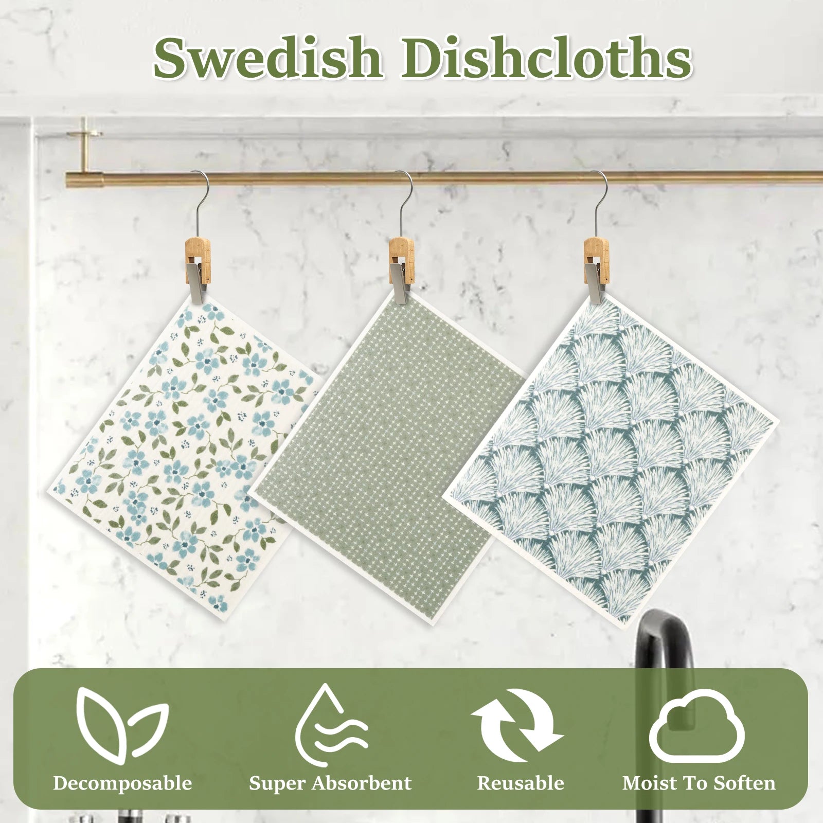 6/12Pcs Swedish Dishcloths Reusable Kitchen Dish Towels Absorbent Dish Rags Biodegradable Soft Cellulose Sponge Washing Cloths