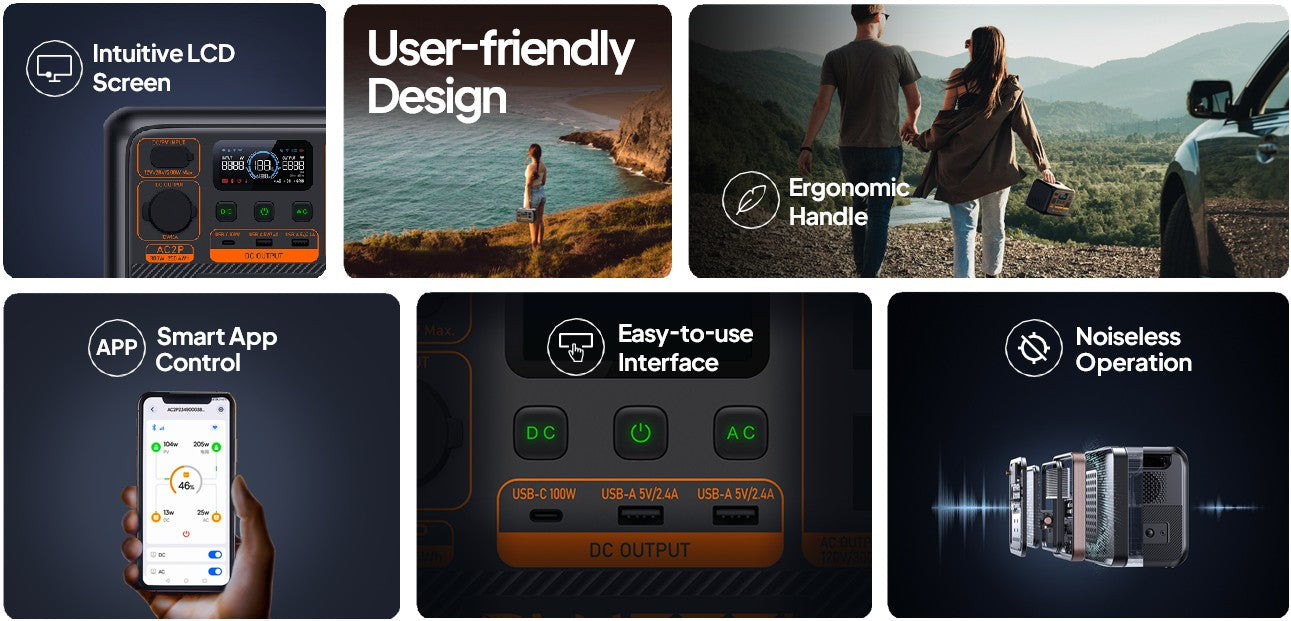 - Versatile Outputs: 2 × AC outlets, USB-A, USB-C (100W), 12V DC, car socket