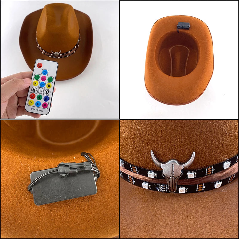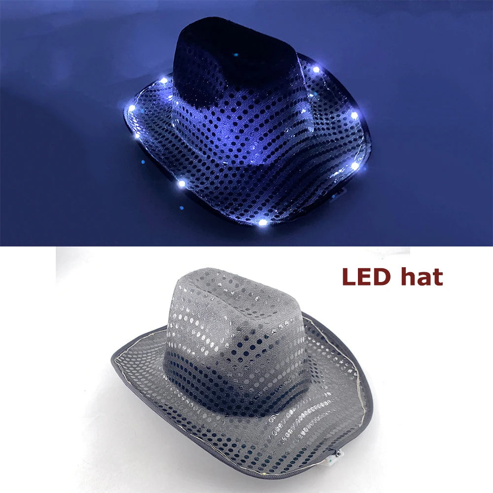 LED Glowing Cowgirl boy Hat Neon Luminous Bride Hat For Holiday Light Up Supplies Fluorescent Party Props Bachelorette Party Hat