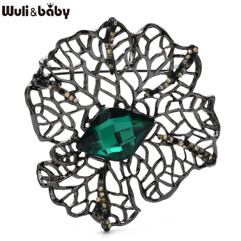 Wuli&baby High Quality Hollow Out Flower Brooches 4-color Crystal Plants Brooch Pins For Women's Clothes Bags Gifts