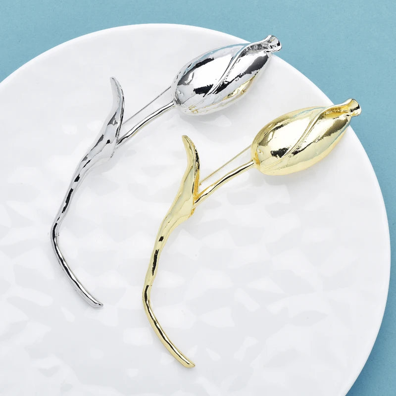 Wuli&baby Large Charming Tulip Flower Brooches Pins For Women Lady 2-color Exaggerate Flowers Bud Office Party Brooch Pins Gifts