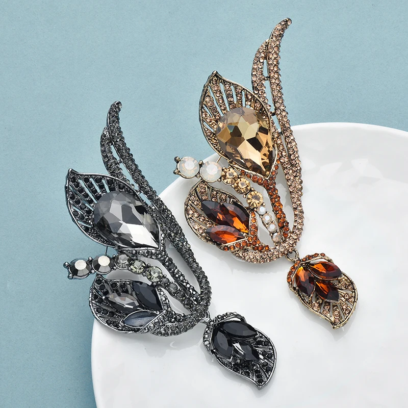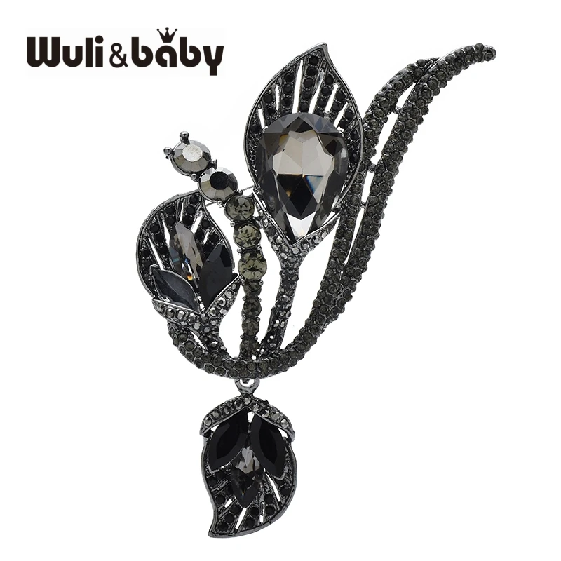 Wuli&baby Luxury Crystal Flower Brooches 2-color Elegant Beautiful Lily Flowers Brooch Pins For Women's Winter Clothes Coat Gift