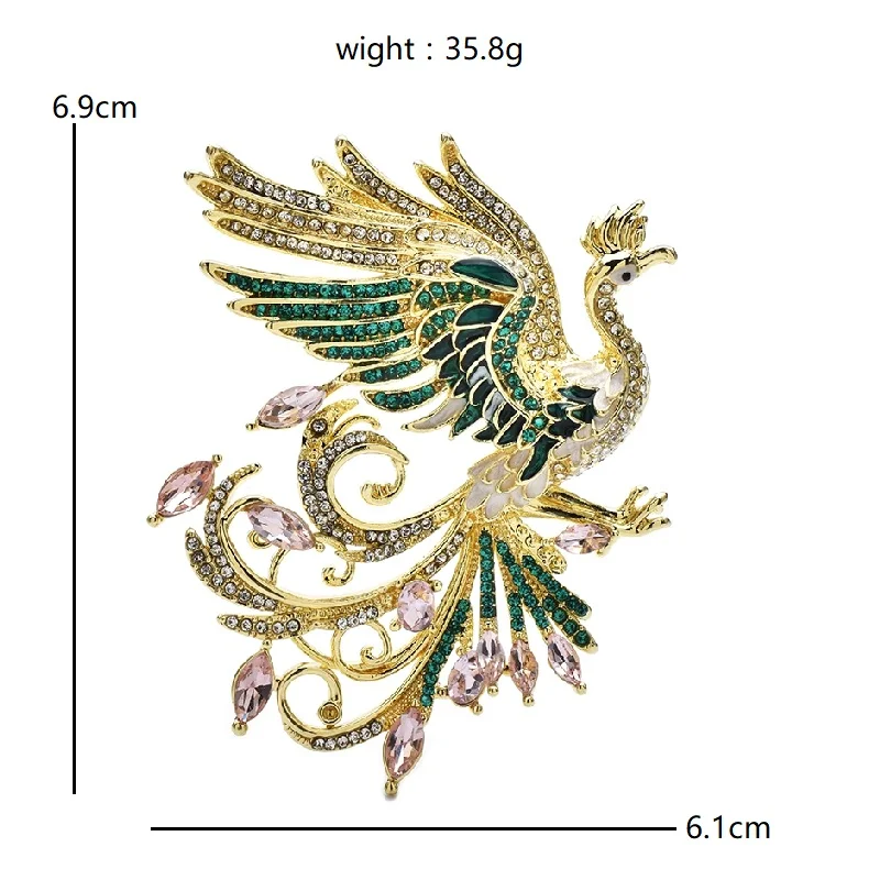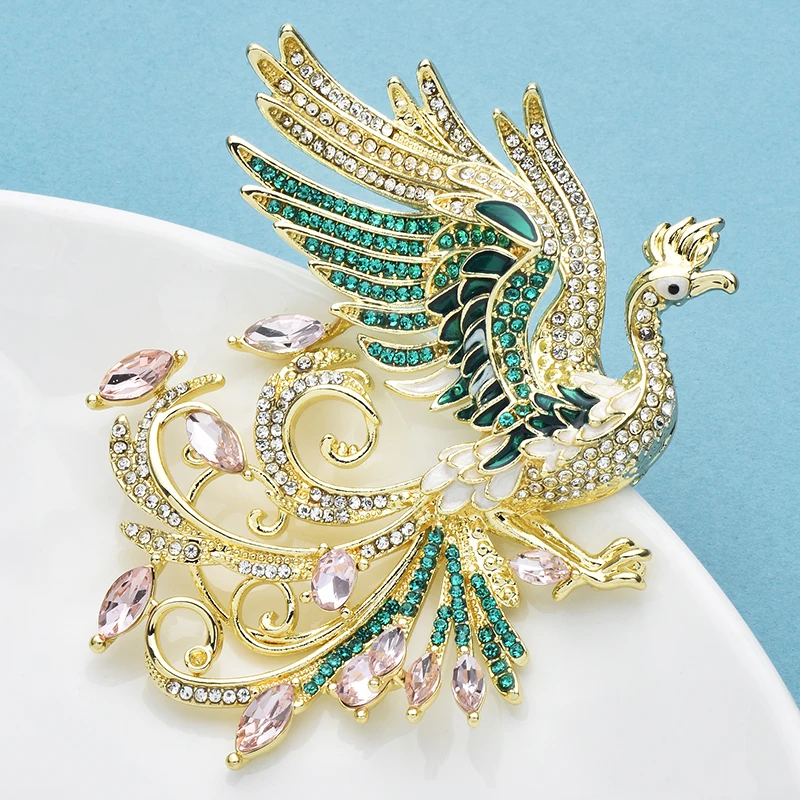 Wuli&baby Luxury Flying Phoenix Brooches Crystal Enamel Divine Bird Animal Brooch For Women's Clothes Pins Gifts