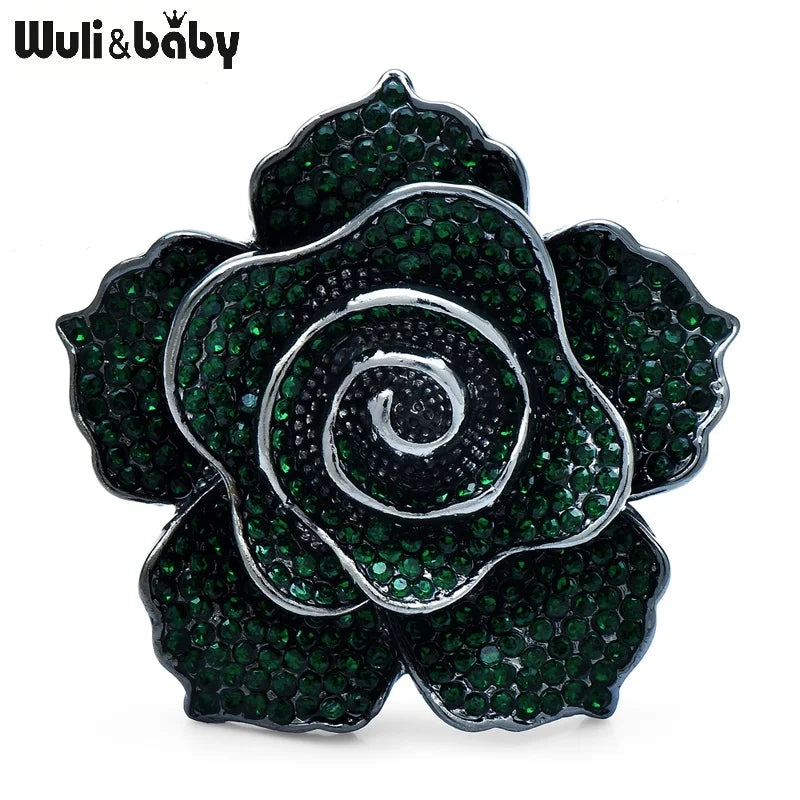 Wuli&baby Luxury Shinning Rose-flower Brooches For Women 4-color Full Rhinestone Charming Flower Plants Office Party Brooch Pins