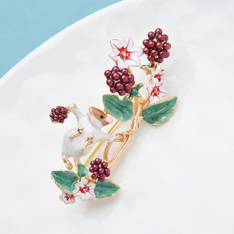 Wuli&baby Pick Fruits Squirrel Brooches For Women Lovely Enamel Animal Casual Party Brooch Pin Gifts