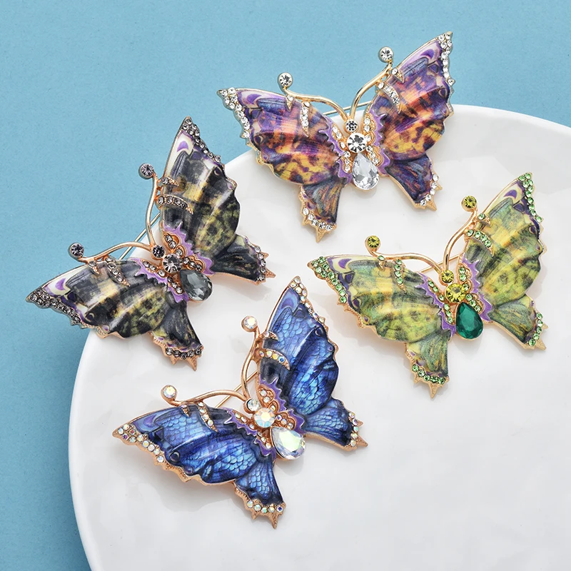 Wuli&baby Realistic Butterfly Brooches 4-color Alloy Enamel Insects Brooch For Women's Clothes Bags' Pins Gifts