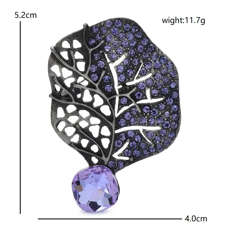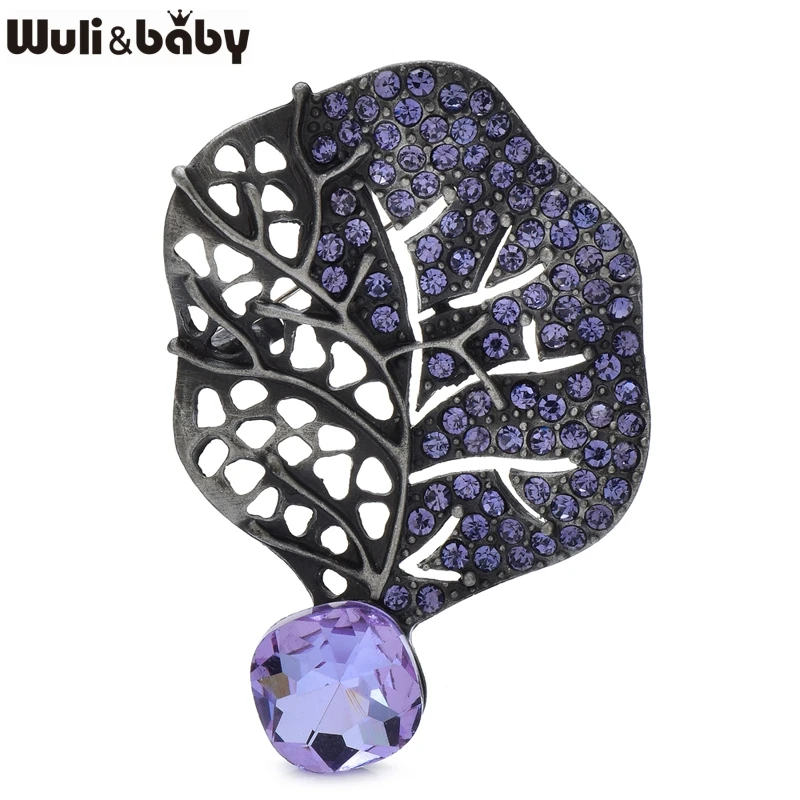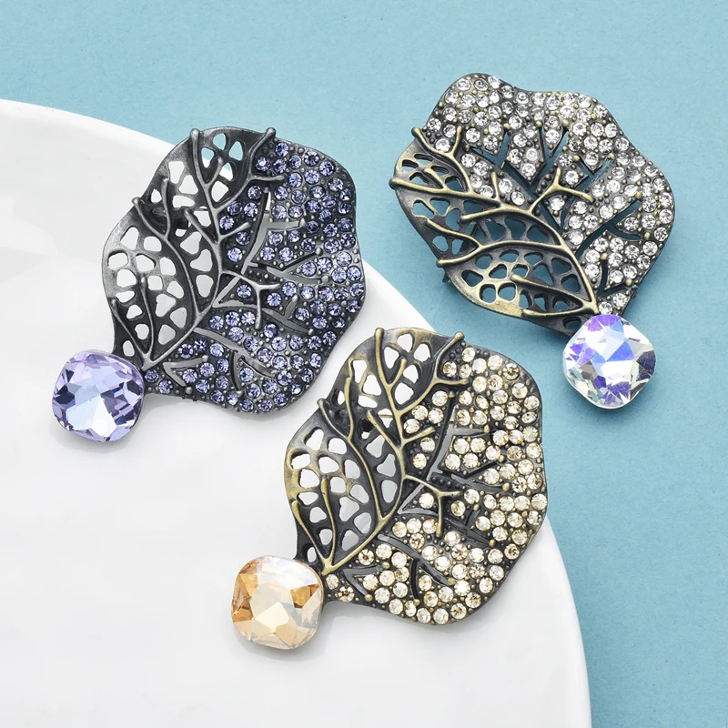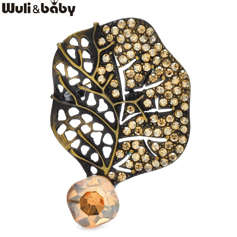 Wuli&baby Retro Crystal Leaf Brooch Pins 3-color High Quality Rhinestone Metal Flower Brooches For Women's Clothes Fashion Gifts