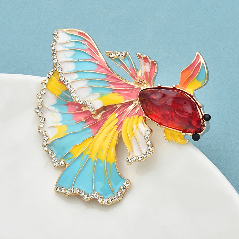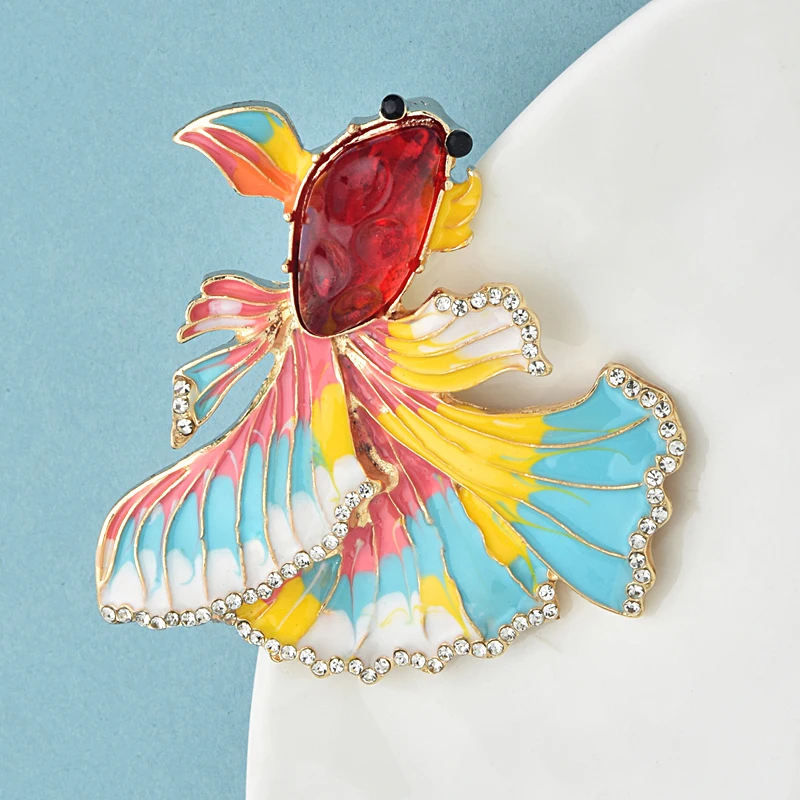 Wuli&baby Vintage Enamel Fish Brooches For Women Unisex Beautiful Big Tail Fish Water Animal Party Office Brooch Pins Gifts