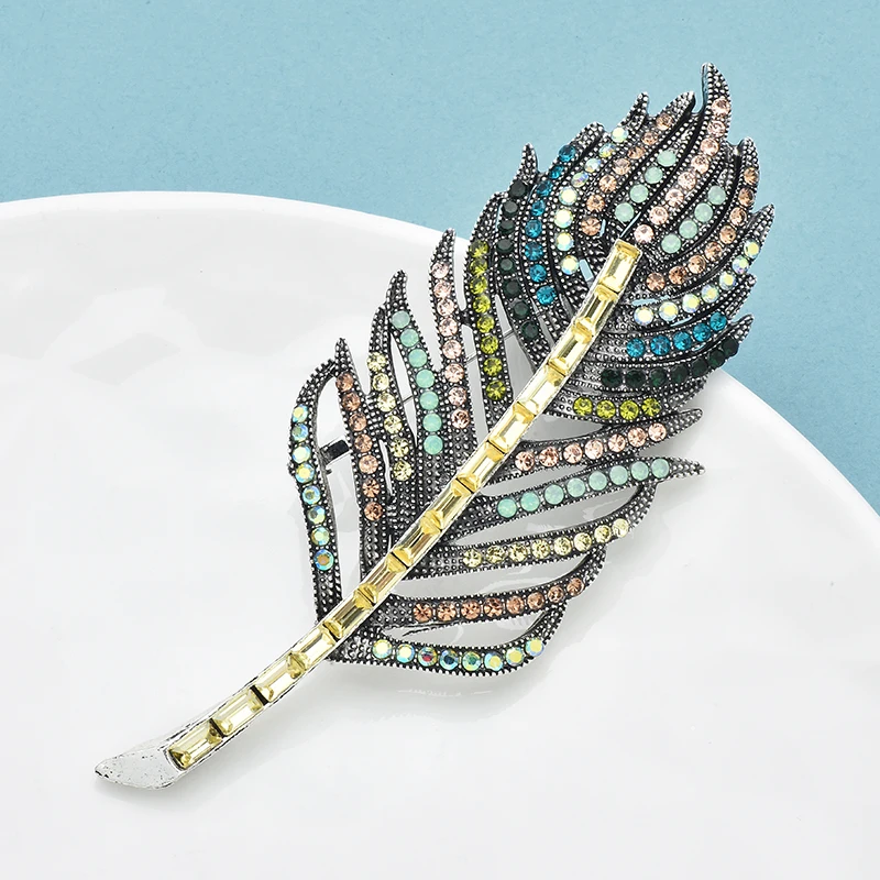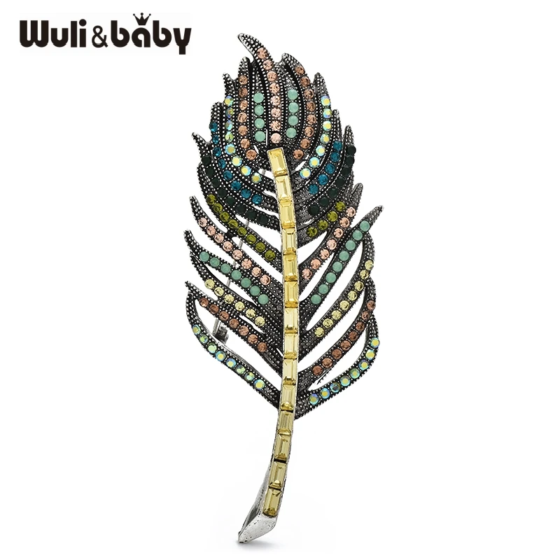 Wuli&baby Vintage Full-rhinestone Feather Brooches For Women Unisex Beautiful Leaf Flowers Party Office Brooch Pins Gifts
