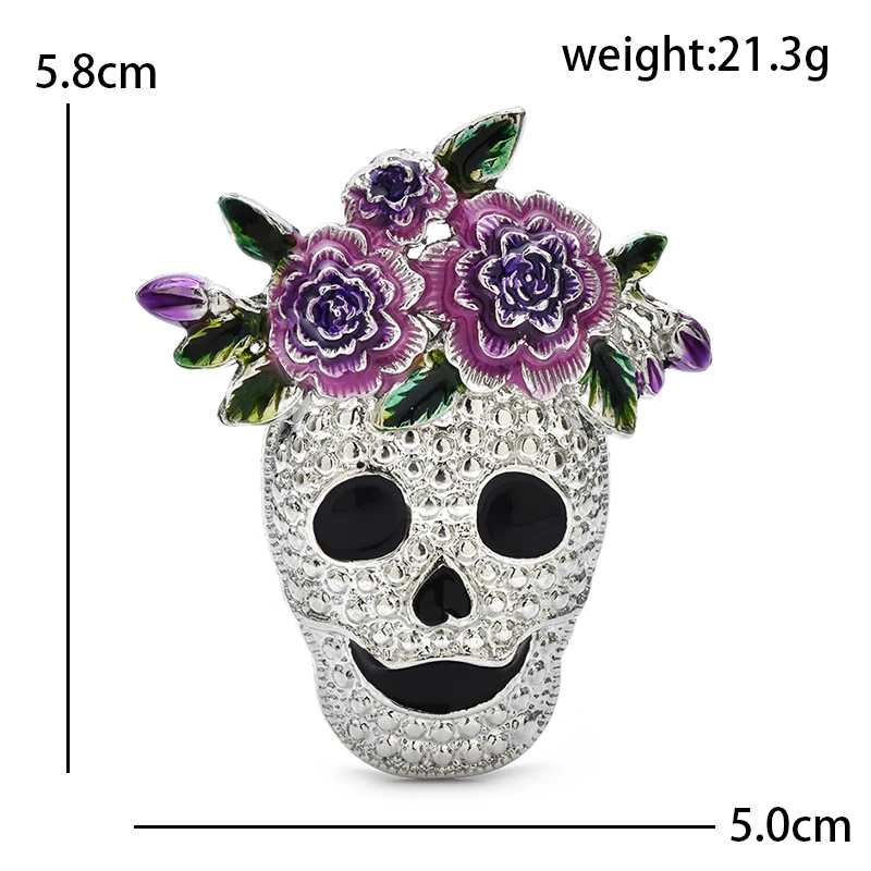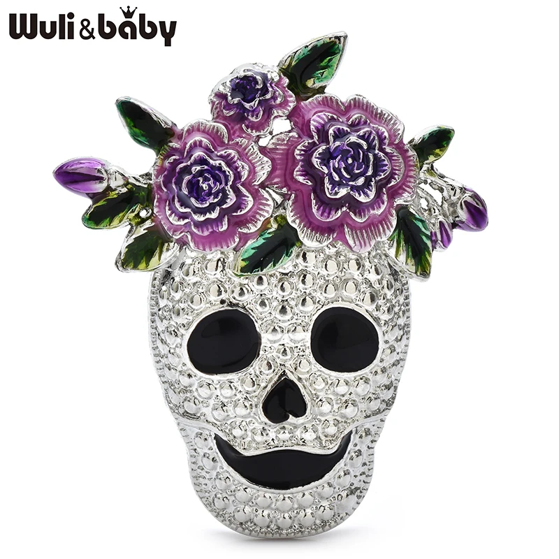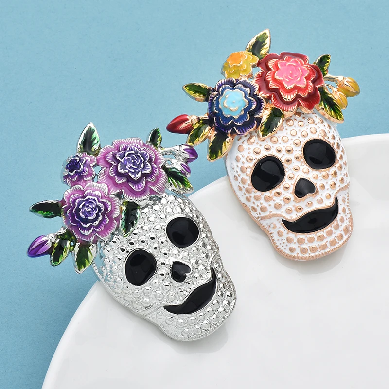 Wuli&baby Wear Flowers Skull Brooches For Women Unisex 2-color Alloy Enamel Skeleton Clothes Bags's Brooch Pins Gifts